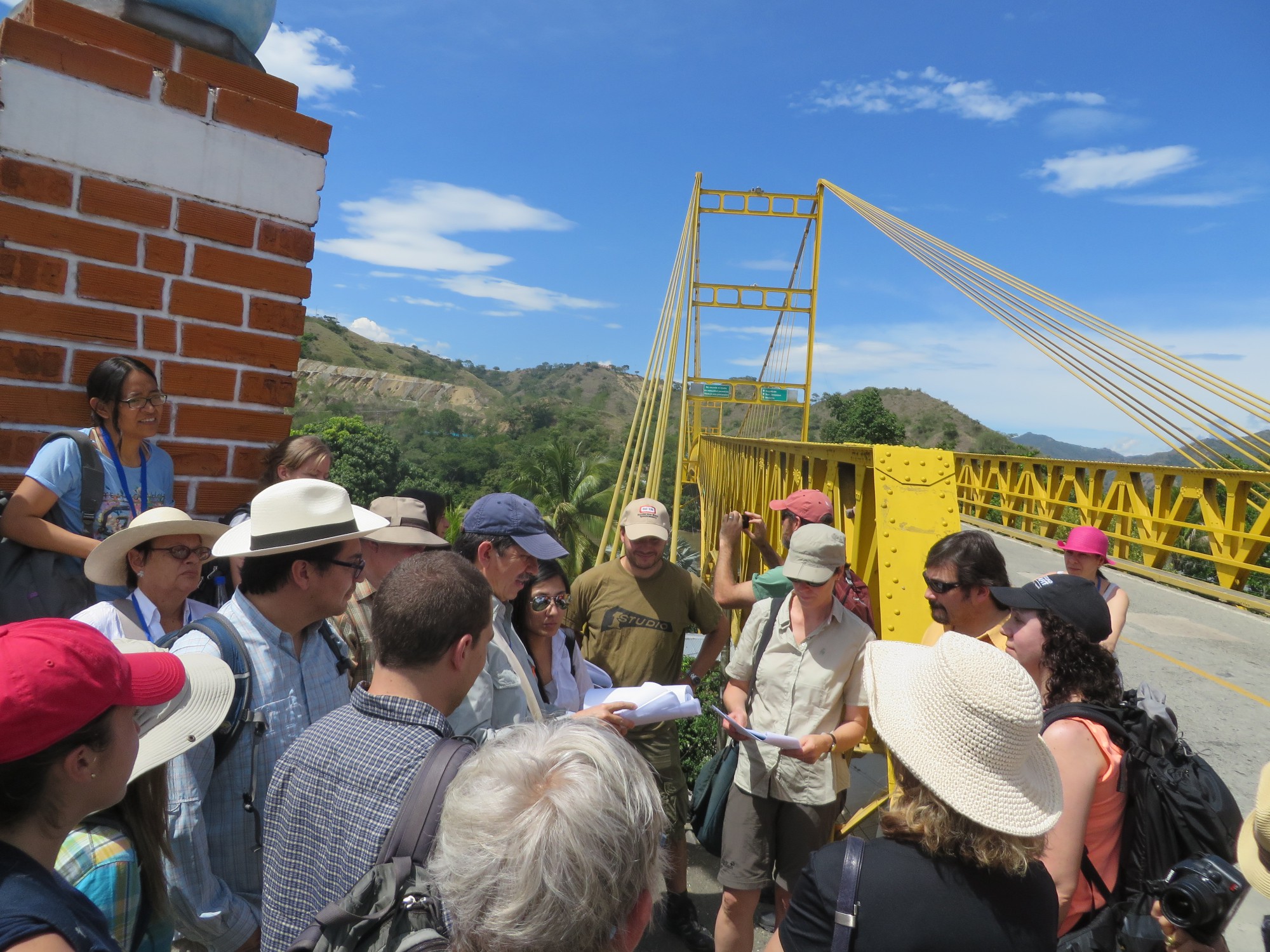 We made a couple of stops by the river so that our Colombian hosts could help orient us to the geography and give us some of the scientific background. The first stop was along a very busy 2-lane highway, where big trucks and cars of every sort trundled past as we tried to listen to our speakers. More distracting than the big trucks were the Colombians who slowed down while passing by so that they could take photos of our group. I suppose we were a rather unusual sight in rural Colombia!