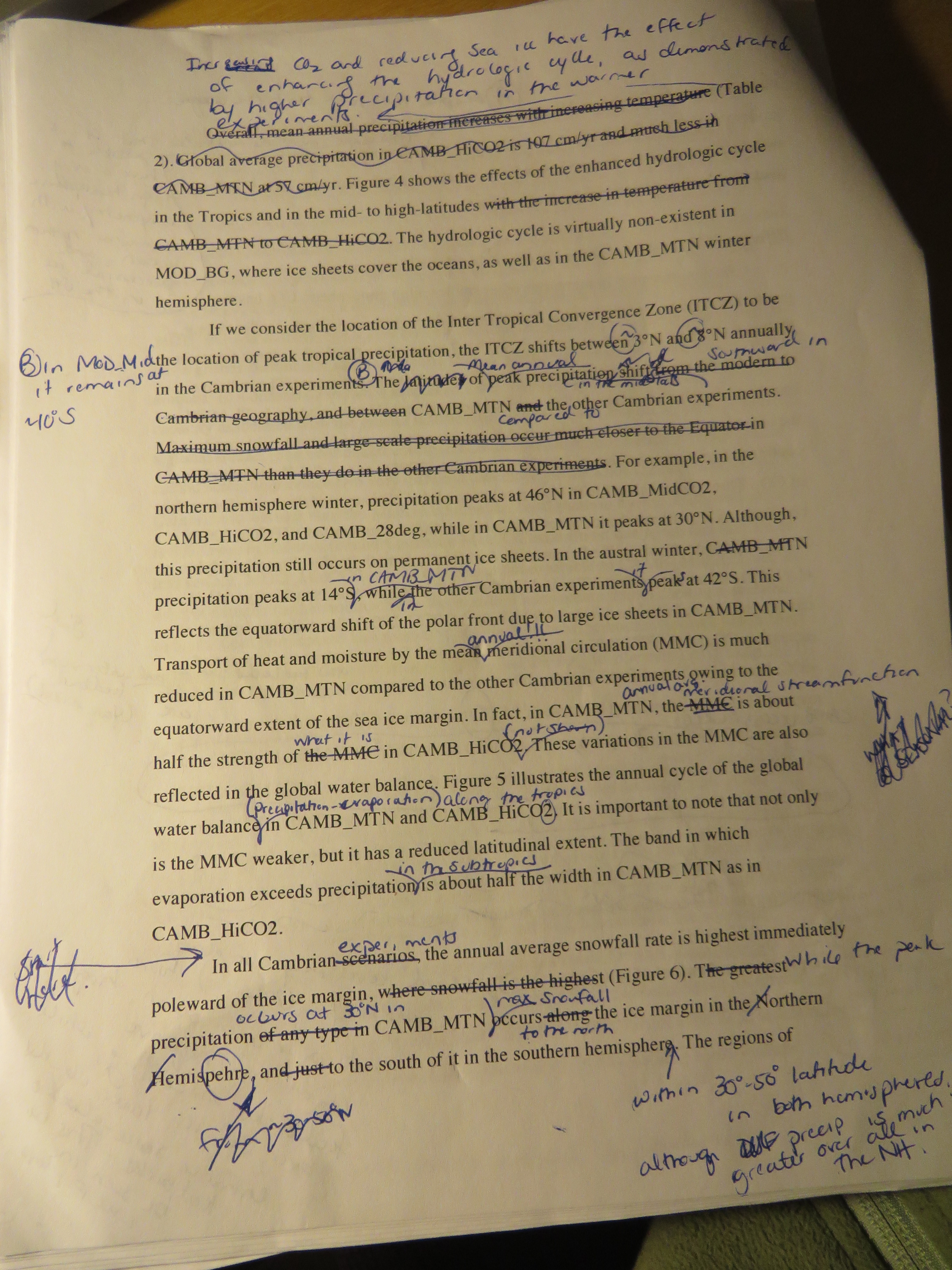 It’s been a long time since anyone has offered substantial corrections on my writing in English. Even when I get paper reviews, the writing itself is never the issue. Maybe there are some suggestions for rewording. If anything, I’m more harsh with my own writing than anyone else. I’m know I’m a harsh editor with my students too. If it makes them feel any better, I’m including a photo below of ONE PAGE of edits from my current manuscript (in English).