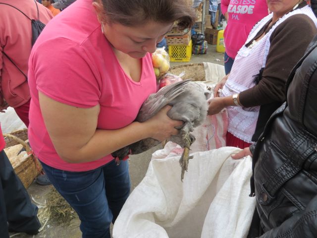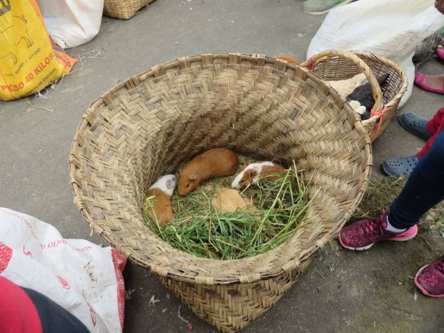 Aisles and aisles of women, dressed in traditional clothing (colorful velvet skirts), presenting passers-by with bags – or sometimes baskets – full of live chickens. But if you weren’t in the mood for a chicken, there were plenty of guinea pigs too.