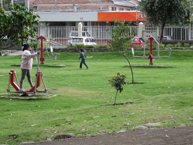 There are exercise machines in every big park in the city. Along the Yanuncay, you’ll find these machines about every mile along the river. They are heavily used, but pretty sturdy. Leg press, anyone?