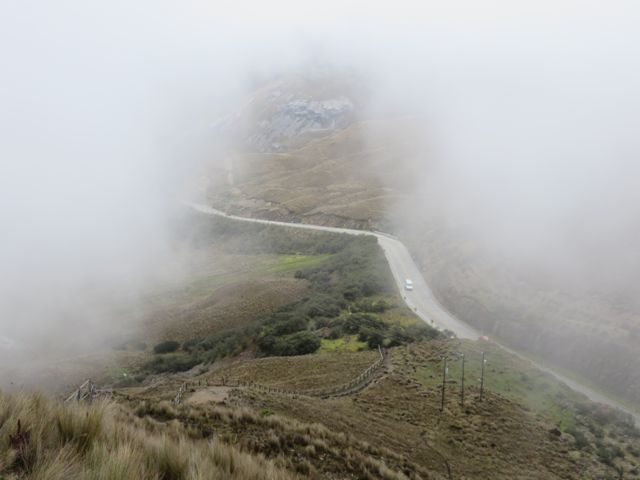 The clouds part just enough to get a view of an ancient Inca trail across the continental divide. Ok, maybe not. This is the spiffy, reconstructed  highway that goes from Cuenca to Guayaquil along the coast.