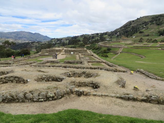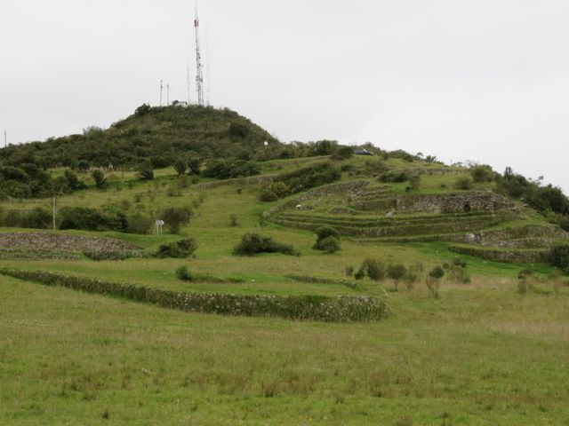 There are lesser well-known ruins just a little ways north of Cuenca, at the prominent peak (some sort of volcanic feature, for you geology-types!) called Cojitambo. It seems that this place is mostly visited by locals, but Charito and Ivan took us up there a couple of weeks ago, along a winding, steep road in the mountains between Cuenca and the neighboring town of Azogues.