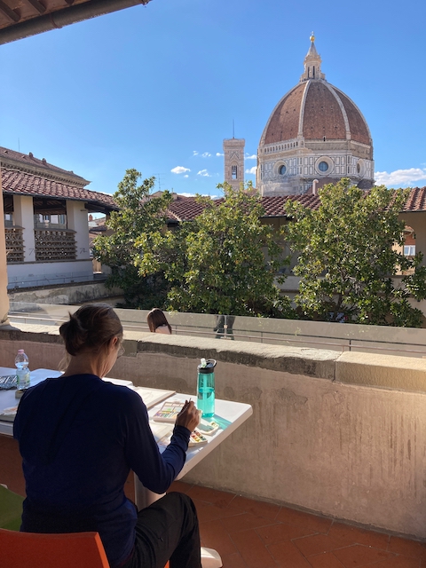 I am so grateful for the afternoon I spent learning watercolor technique at the terrace of a library in central Florence, where we had a perfect view of the Duomo. I also loved it because my feet were sore and blistered from two very long days of walking, and this gave me a chance to sit for three hours while immersing myself in an activity that seems so hard to initiate at home.