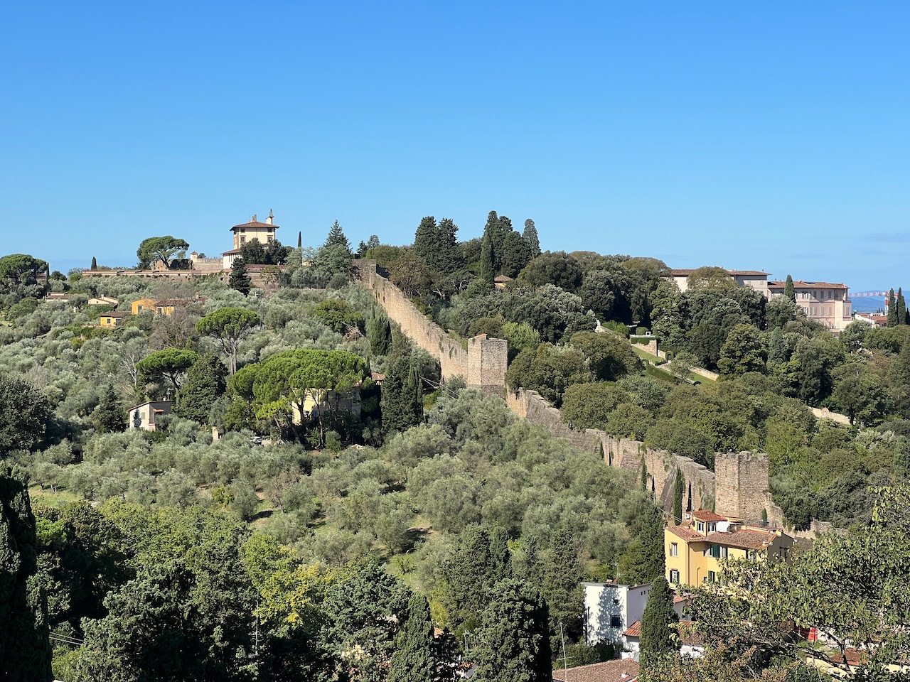 There was the long walk that woke up my legs and took me past the old city walls and up into the hills on the west side of the Arno River. I followed a road that ran around the back side of the famed Boboli Gardens, past villas hidden among olive groves and vineyards and ridge tops lined with cypress trees overlooking the city below. The road wound back to Piazzale Michelangelo, with it’s panoramic view of the river surrounded by red roofs and the remaining gray medieval towers of the city. How good it felt to stretch my legs at the edge of Tuscan countryside.