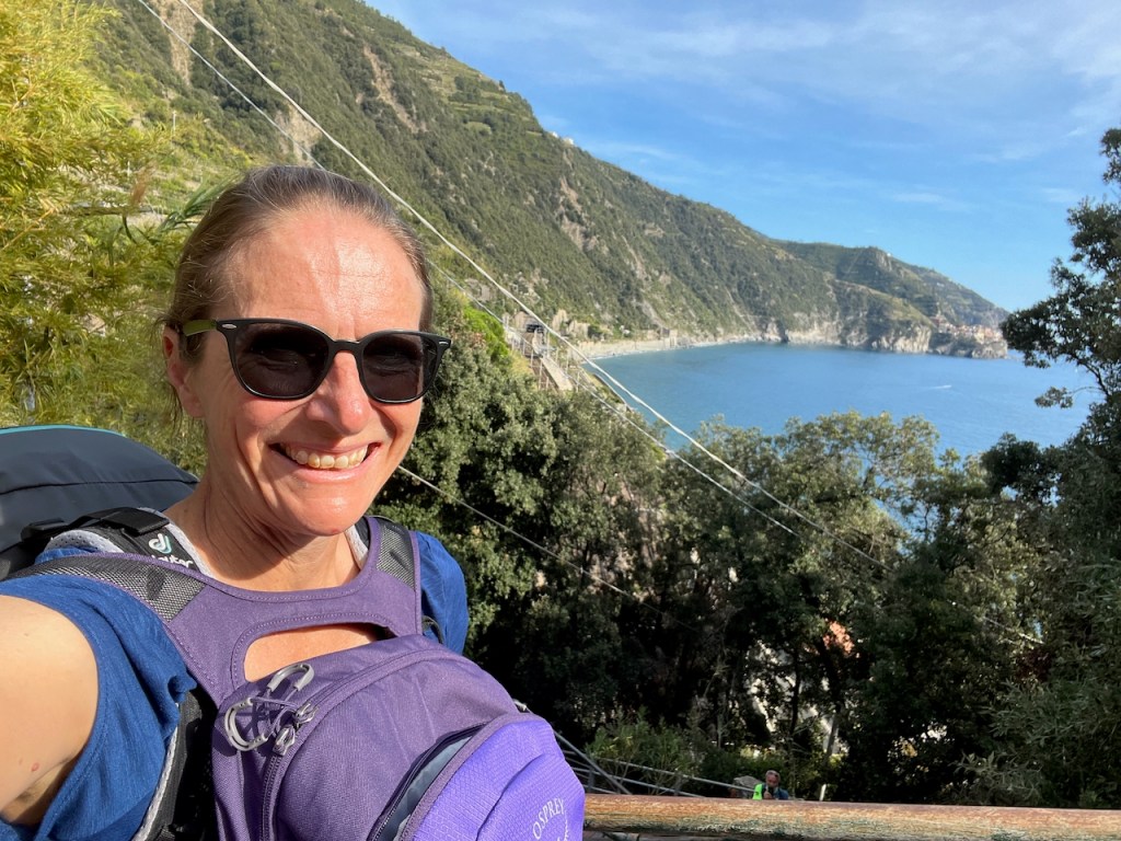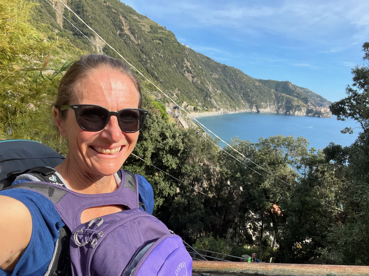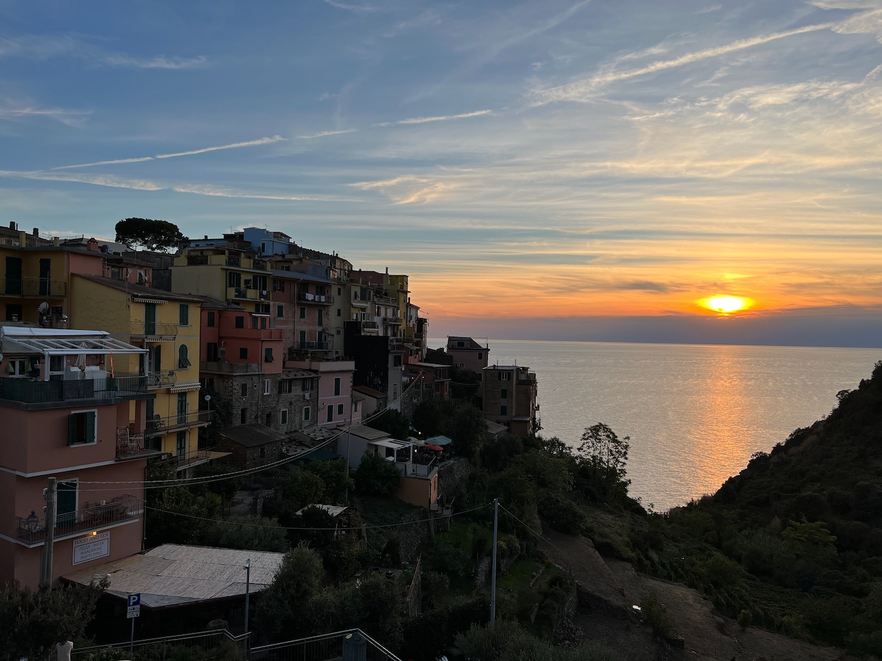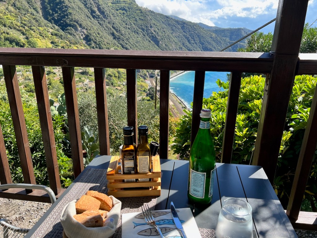 Of the five Cinque Terre towns, Corniglia is the only village without easy ocean access. Because of that, it tends to be a bit quieter. Lots of travel bloggers suggest skipping it if you’re short on time, so this seemed like a natural choice for my four-day seaside stay. I wanted to be in a place where I could gaze at the ocean, and was lucky enough to find a small studio with a balcony and a great view of the ocean, but also broad views of the terraced vineyards, and the rows of buildings that made up the central part of village.