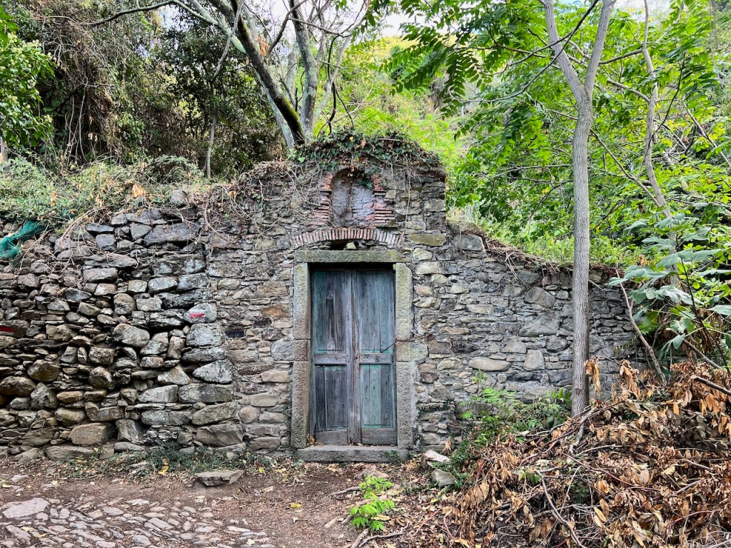 The trail was enchanting, winding along the steep hill slope, past more terraced vineyards and olive groves perched above cerulean waters that sparkled when the sun would peek out from the clouds. Occasionally I passed a farmhouse, or an abandoned stone hut, and I felt like I had stepped back in time. Or into a fairy tale.