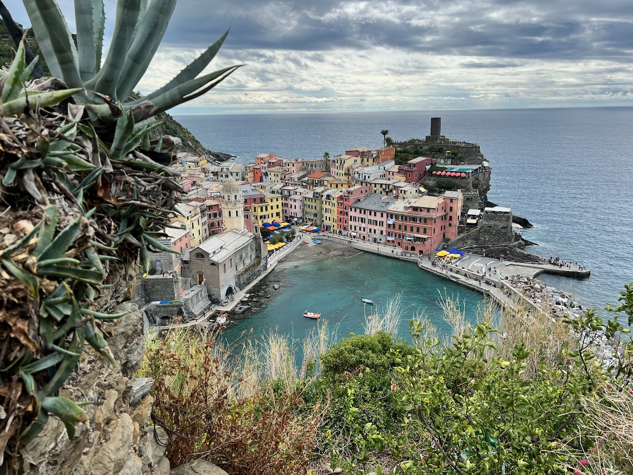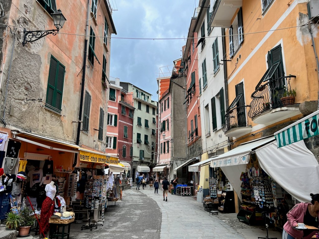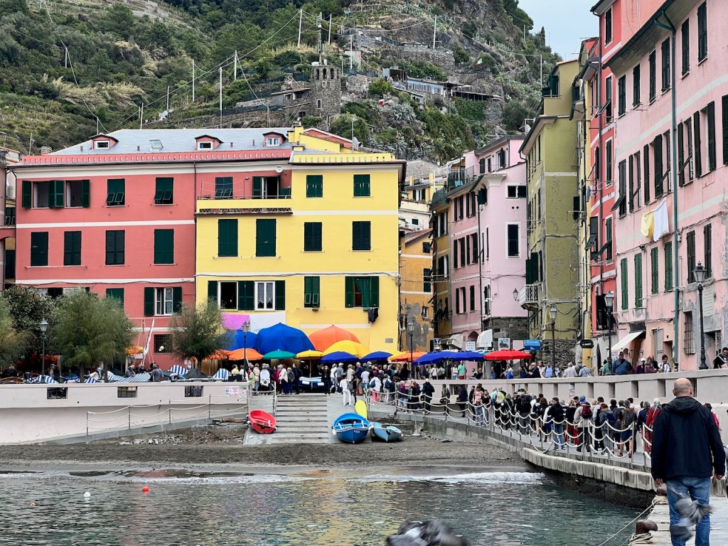Vernazza’s promenade sees its share of tourists every day – even when it’s cloudy and a bit cooler than people are expecting on the Italian Riviera.