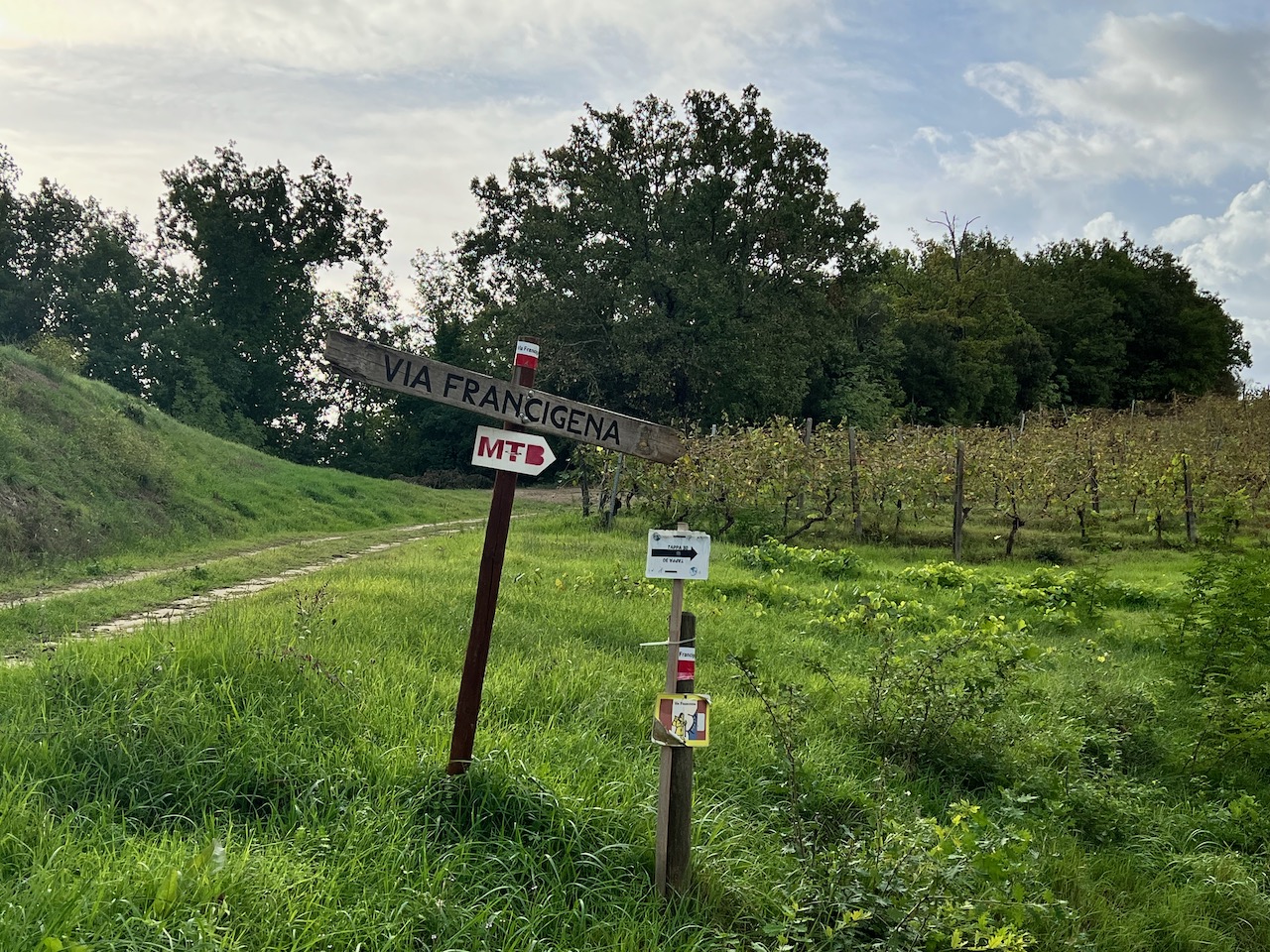 Like the more famous Camino de Santiago, the Via Francigena has a well mapped and well marked route southward. You can plan to do this type of walk however you like. Some people carry all their gear and camp in farm fields along the way. Others stay in hostels and guesthouses, hiking anywhere from 8 to 25 miles or more each day. There are extensive guidebooks on these types of multi-day/week pilgrimage walks, and there are often recommended ‘stages’ that take you 15-30 miles a day. Because I was traveling alone, and fairly new to this whole long-distance walking culture, I had a travel agent* book my lodging and bag transfer each day, so I could walk along with only my daypack.
