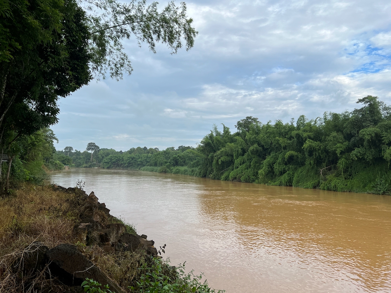 This was our first encounter with Cat Tien National Park in south-central Vietnam. The park is about a 3.5 hour drive north of Ho Chi Minh City, and a four hour drive south of Dalat. In our last few days in Vietnam in June 2023, we had to make our way back from Dalat to Ho Chi Minh to catch our flight home. A stopover at Cat Tien – known for its wildlife and natural beauty – sounded right up our alley. We arranged our transportation, lodging, food and tours in the park through Green Hope Lodge, a small, family-run lodge alongside the river that serves as the national park boundary. To get into the park, you walk 10 minutes down the road from the lodge and cross the river on a ferry.