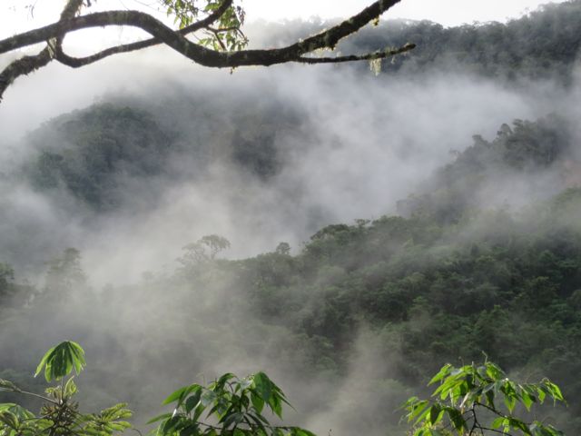 The clouds here hang in thick patches on the sides of the hills. Sometimes they seem to rise right out of the trees, forming only a few feet above the canopy as water vapor from this steamy forest becomes too much for the air to handle. If my trip to Alausí gave me the impression of going back in time, my visit to the Bombuscaro River valley on the northern border of Parque Nacional Podocarpus took me even further back. Let’s just say that it wouldn’t have been much of a surprise to see a dinosaur come crashing through the underbrush.