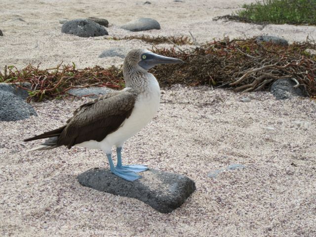 I felt as though I had walked into an episode of National Geographic. There it was, the famous blue-footed booby, less than 5 feet away, contentedly situated atop a small rock, and staring at us with alien eyes. He didn’t even blink as cameras shuttered and beeped. I’m guessing that this particular booby – and every booby on North Seymour Island – is already featured in thousands of photo albums and Facebook pages.